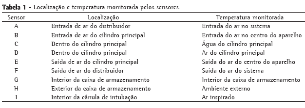 ExperimentaçãoO aparelho foi ativado e mantido em repouso até que houvesse equilíbrio térmico dentro do sistema a 37 °C. Conectou-se a cânula orotraqueal ao aparelho e iniciou-se a ventilação mecânica, que foi mantida até atingir novamente o equilíbrio térmico (Figura 3).