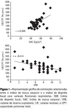 corporal correlacionou-se significativamente com: índice de dispnéia basal, volume residual/capacidade pulmonar total, volume expiratório