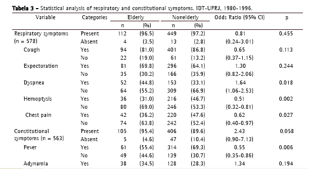 Clinical aspects of pulmonary tuberculosis in elderly patients from a university hospital in Rio de Janeiro, Brazil
