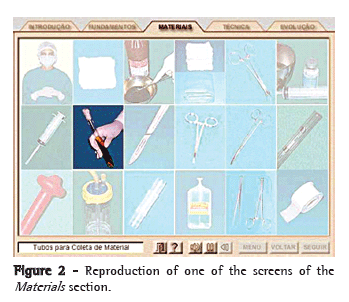 The program uses multimedia resources: original drawings; photographs; animation; videos; texts; and narratives. A microcomputer was used in the data processing. Macromedia Director 6.5 was the authorship program used, and video images were edited using Quicktime 3.0 program for