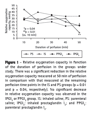 In conclusion, the experimental model of PGI2 administration before lung extraction is feasible and reliable. During reperfusion, hemodynamics and gas exchange trended better with the use of PGI2 than with that of saline. The experimental model investigated in the present study can be used in future studies in order to evaluate other inhaled agents, such as perfluorocarbons.