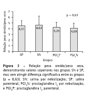 ResultadosA média do peso dos animais não diferiu entre os grupos: 312 g, 319 g, 317 g e 317 g, respectivamente, nos grupos SN, SP, PGI2N e PGI2P (p > 0,05).