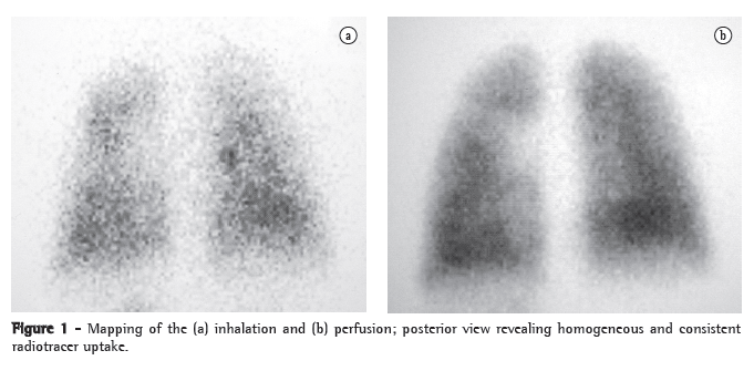 Ventilation/perfusion scintigraphy revealed homogeneous radiotracer uptake in the perfusion mapping (Figure 1). Nonspecific treatment was started, using digitalis and anticoagulation therapy.