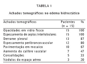 Este estudo teve como objetivo descrever as alterações pulmonares no edema hidrostático observadas na tomografia computadorizada de alta resolução de tórax.