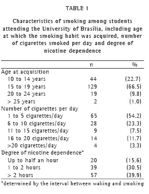 Therefore, the objective of the present study was to characterize smoking among students attending the Universidade de Brasília (UnB, University of Brasília) as a means of furthering the development of strategies aimed at the prophylactic treatment of smoking among youth.