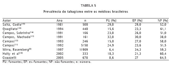 6. Mirra AP, Rosemberg J. Inquérito sobre prevalência do tabagismo na classe médica brasileira. Rev Assoc Med Brasil. 1997;43(3):209-16.