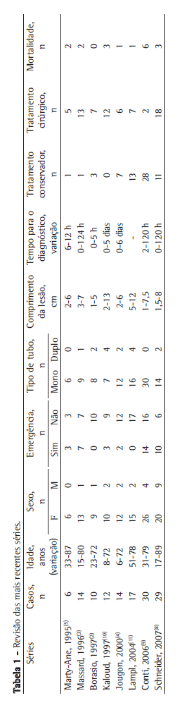 Todos os estudos coletados restringem-se a séries com poucos pacientes, com idades variáveis e importante predileção pelo sexo feminino. O período entre a lesão e o diagnóstico variou de 0 a 124 h. A mortalidade relatada é baixa, sendo um pouco maior nos pacientes submetidos ao tratamento cirúrgico. Os óbitos não estiveram relacionados à lesão traqueal ou à cirurgia em si, mas a complicações clínicas em pacientes em mau estado geral e com múltiplas comorbidades (Tabela 1).