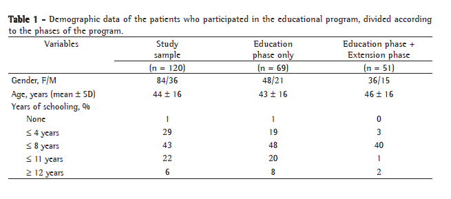 Control goals are not always achieved, and the absence of standardization regarding the minimum requisites for these programs causes disagreement among authors attempting to validate the best educational model.(3) Factors related to program structure, adherence measures, outcomes and patient characteristics have been described as being responsible for the conflicting results of different studies.(7,8)