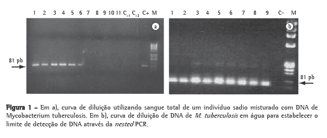 Uma variação da PCR, conhecida como nested PCR (nPCR), utiliza dois conjuntos de oligonucleotídeos iniciadores em reações subsequentes, cujo produto de amplificação da primeira reação é utilizado como molde para a segunda. Essa técnica é proposta para a detecção do M. tuberculosis nos casos que necessitam de alta especificidade e sensibilidade.(9,11) O propósito da pesquisa foi avaliar o desempenho da nPCR em amostras sanguíneas de crianças paucibacilíferas e sua aplicabilidade clínica como ferramenta diagnóstica para a TB infantil.