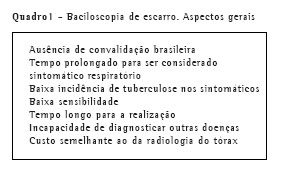 A seguir são discutidas as várias críticas à baciloscopia de escarro como método de diagnóstico inicial para sintomáticos respiratórios (Quadro 1).