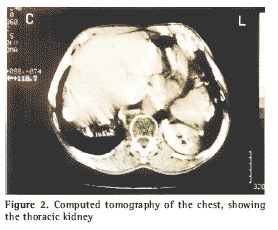 Prior to the advent of computed tomography, a diagnosis of thoracic kidney was confirmed, in most patients, through excretory urography(18). The use of computed tomography as a diagnostic procedure was previously reported by Grenadir & Larsen, chosen for its image quality and ease of interpretation(1).