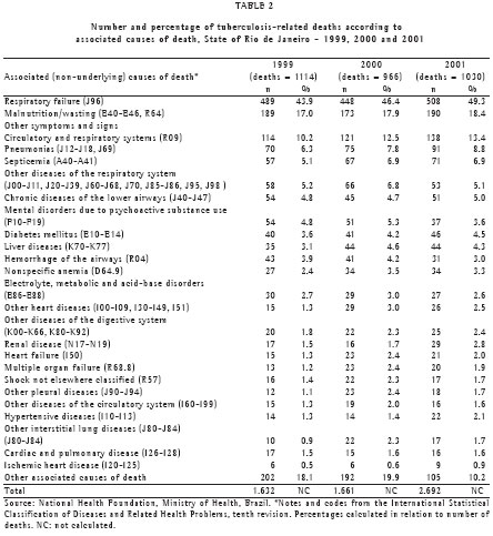 Causas múltiplas de morte relacionadas à tuberculose no Estado do Rio de Janeiro entre 1999 e 2001