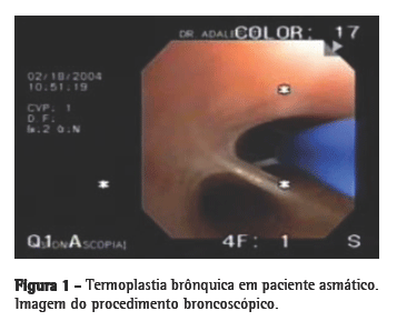 Introduction Asthma patients presenting severe episodes of bronchospasm, even with appropriate treatment, are a therapeutic challenge. Many symptoms of acute asthma and cases of severe attacks are the result of excessive bronchial smooth muscle contraction, which is the principal target of inhaled bronchodilator therapy.(1) Studies have been carried out in order to investigate the possibility that a specific phenotypic alteration of the smooth musculature in asthma patients is relevant to the physiopathology of the disease.(2) Bronchial thermoplasty is a bronchoscopic procedure which, through the generation and transmission of radiofrequency waves, creating heat that reduces the muscular mass in the airways of asthma patients with the objective of reducing smooth muscle-mediated bronchoconstriction. The energy is released using a catheter (Alair System; Asthmatx: Mountain View, CA, USA) connected to a radiofrequency generator.(3)