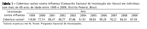 No Brasil, a Campanha Nacional de Imunização dos Idosos iniciou-se em 1999. A população-alvo era aquela com 65 anos de idade ou mais e conseguiu-se vacinar 87,3% da estimativa para essa faixa etária. No ano subsequente, procurou-se vacinar todos os brasileiros com mais de 60 anos; contudo, a cobertura caiu para 71,8%. Com um reforço da campanha, em 2001, foi atingida uma cobertura de 82,1%.(5) Esses dados se assemelham com aqueles observados no DF.