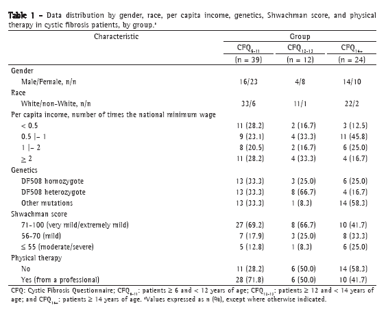 The objective of the present study was to employ the CFQ as a means of assessing the QoL of patients with CF followed at a university hospital referral center for CF.