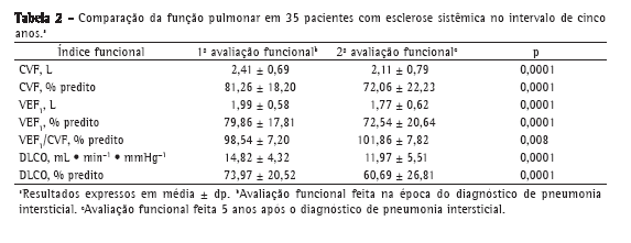 Pneumonia intersticial associada à esclerose sistêmica: avaliação da função pulmonar no período de cinco anos