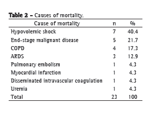 None of the 29 patients admitted to the ICU for postoperative follow-up died. Markos et al.(3) reported a similar result, showing that there were no deaths among postoperative follow-up patients.