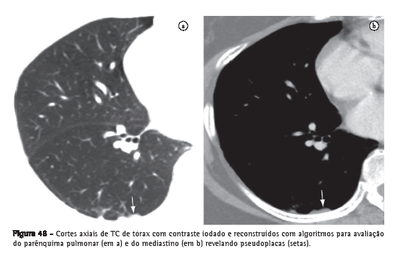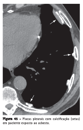 Placa pleuralEspessamento pleural focal, por vezes com calcificações, de espessura variável e com extensão de até 5 cm (Figura 45).(68) Usualmente ocorre