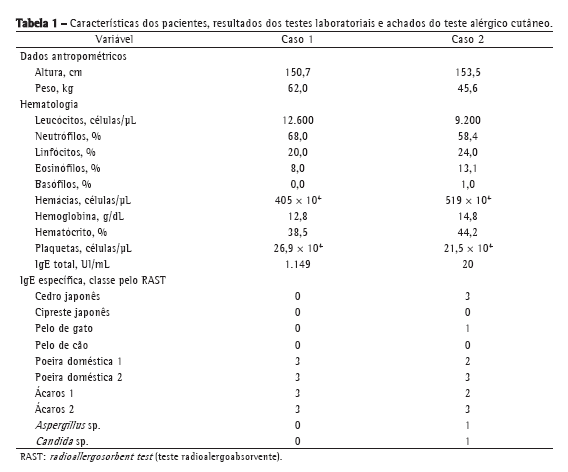 Uma subanálise de dados provenientes de um grande estudo multicêntrico demonstrou que o omalizumabe é menos benéfico para pacientes com IgE sérica total de 0-75 UI/mL, mesmo para aqueles com positividade para IgE específica para alérgeno perene.(3) Baixos níveis séricos de IgE total podem ser causados por tratamento a longo prazo com corticosteroides orais ou por produção local de IgE no trato respiratório inferior apenas, como se observa na asma não atópica.(4) Humbert et al. demonstraram que a IgE total tende a diminuir com a idade em indivíduos com asma não atópica.(5) Alguns autores questionaram a existência da asma não atópica e sugeriram que a asma sempre tem um componente de dependência da IgE.(5-7) Se os testes para IgE sérica específica forem negativos, testes como o teste cutâneo de puntura e o teste de contato, que são mais sensíveis que os testes para IgE sérica específica, podem ser utilizados.(8) A IgE específica classe 3-5 pelo radioallergosorbent test (RAST, teste radioalergoabsorvente) é um fator causal de reações alérgicas. Por outro lado, a IgE classe 1 e a IgE classe 2 pelo RAST nem sempre estão relacionadas a alergia. Acreditamos que a classificação do RAST não é confiável o suficiente para que seja o fator decisivo na escolha de tratar um portador de asma com omalizumabe. Além disso, a IgE sérica total nem sempre reflete a gravidade ou a atividade da asma. Portanto, é possível que alguns pacientes com asma persistente grave e IgE sérica total fora da faixa de 30-700 UI/mL respondam ao tratamento com omalizumabe, como ocorreu nos dois casos apresentados aqui.