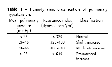 A recent criterion defines the presence of pulmonary vasoreactivity as a decrease in MPAP of at least 10 mmHg, its final value being ≤40 mmHg, without changes or with improvement in cardiac output. Table 2 shows data on the presence of pulmonary vasoreactivity.