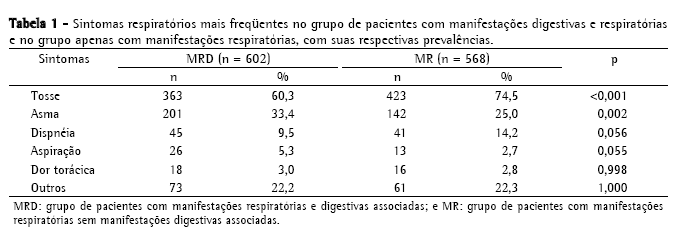 Em um estudo prévio, realizado em nosso laboratório, demonstrou-se haver um número expressivo de pacientes com manifestações respiratórias e DRGE. Isso foi particularmente importante nos asmáticos encaminhados para avaliação funcional esofágica.(10)