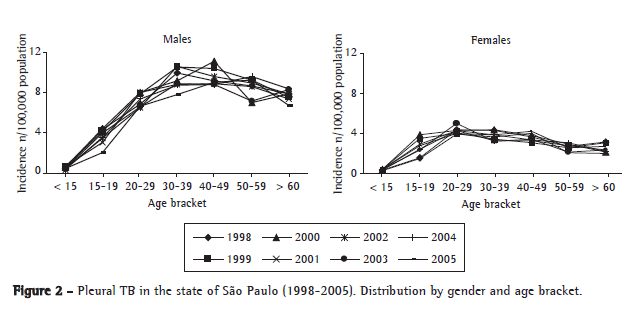 Since there are no epidemiological studies evaluating pleural TB in Brazil, we believe that the analysis of the cases in the state of São Paulo (from 1998 to 2005) could be useful for national application.