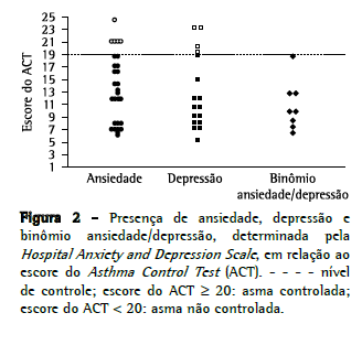 Os transtornos psiquiátricos, principalmente a ansiedade e a depressão, têm sido associados à asma.(9-13) Tanto os pacientes asmáticos quanto os pacientes com ansiedade apresentam um comportamento defensivo; aqueles, em virtude do seu estilo repressivo de enfrentamento, podem ter uma capacidade diminuída para perceber os sintomas da asma, um pré-requisito necessário para seguir um plano de ação pessoal para a asma, enquanto estes podem ter uma percepção mais aguçada de seus sintomas.(6,14) Portanto, a presença de ansiedade ou depressão pode afetar os resultados de um questionário multidimensional autoaplicável como o ACT.