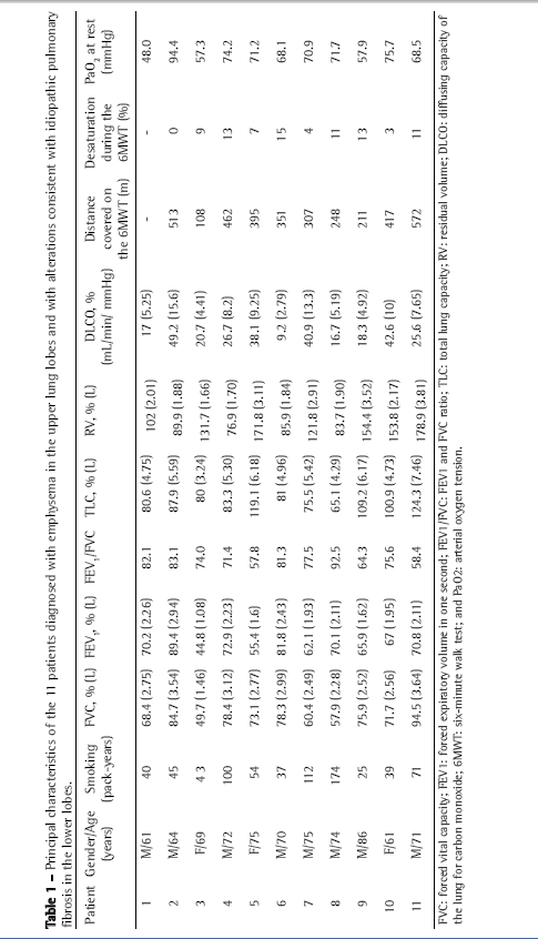 In the present study, we describe the clinical and functional aspects of 11 patients with emphysema and IPF.