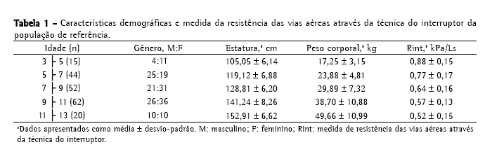 Resistência de vias aéreas em crianças medida pela técnica do interruptor: valores de referência