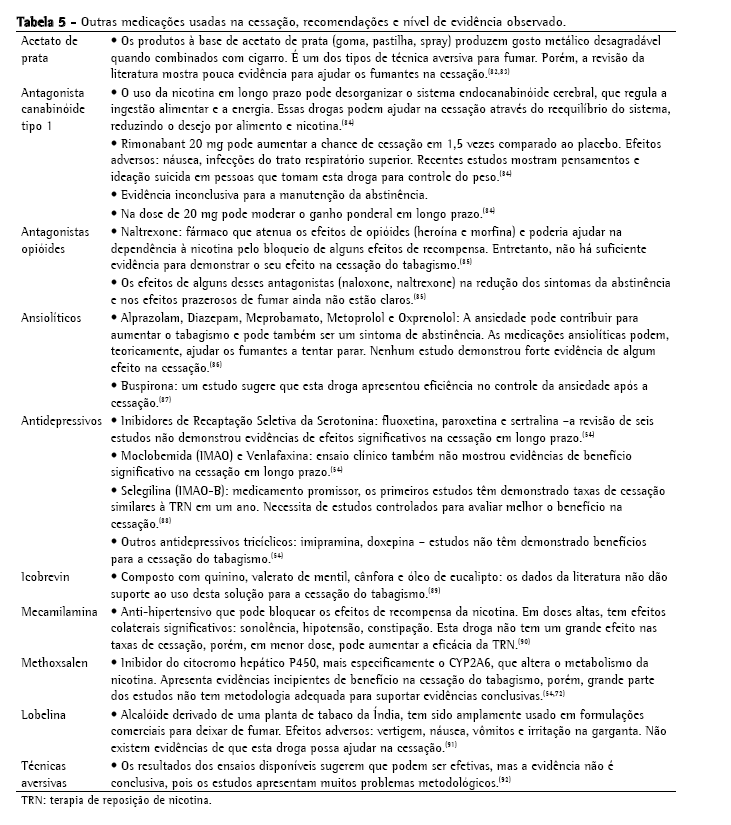 Os métodos baseados na terapia comportamental cognitiva (TCC)(15,30) são fundamentais na abordagem do fumante em todas as situações clínicas, mesmo quando é necessário apoio medicamentoso.(31)