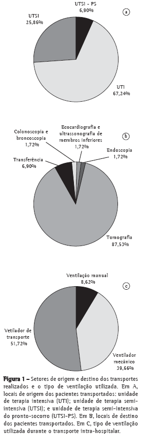 Todas as unidades envolvidas neste estudo apresentavam um padrão semelhante de transporte, e os pacientes foram submetidos ao transporte intra-hospitalar conforme a rotina do setor. O tipo de ventilação utilizado foi decidido pela própria equipe, de acordo com as condições clínicas do paciente e com a disponibilidade dos equipamentos no setor.