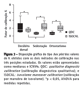 Apesar de a ISOCAL ser considerada o padrão ouro para a calibração da PRI, a grande maioria dos estudos emprega a QDC, devido ao fato de que essa não demanda manobras respiratórias específicas.(10-13) Desconhecemos, até o presente momento, estudos comparando os valores da constante K dos métodos de calibração da PRI quando diferentes posturas são empregadas.