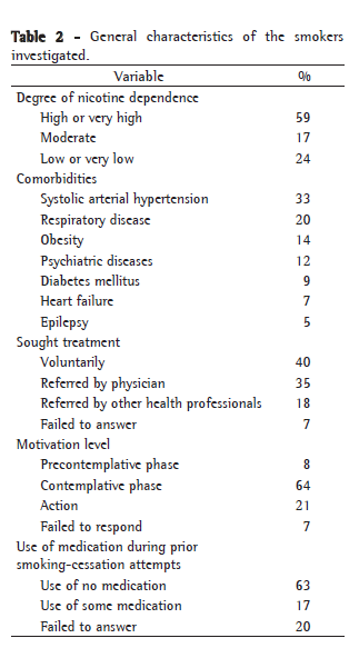 The present study was observational, and, therefore, our results cannot be extrapolated to other populations. Although we did not profile smokers who seek treatment at supplementary health care facilities, our data are useful to other public health care facilities.