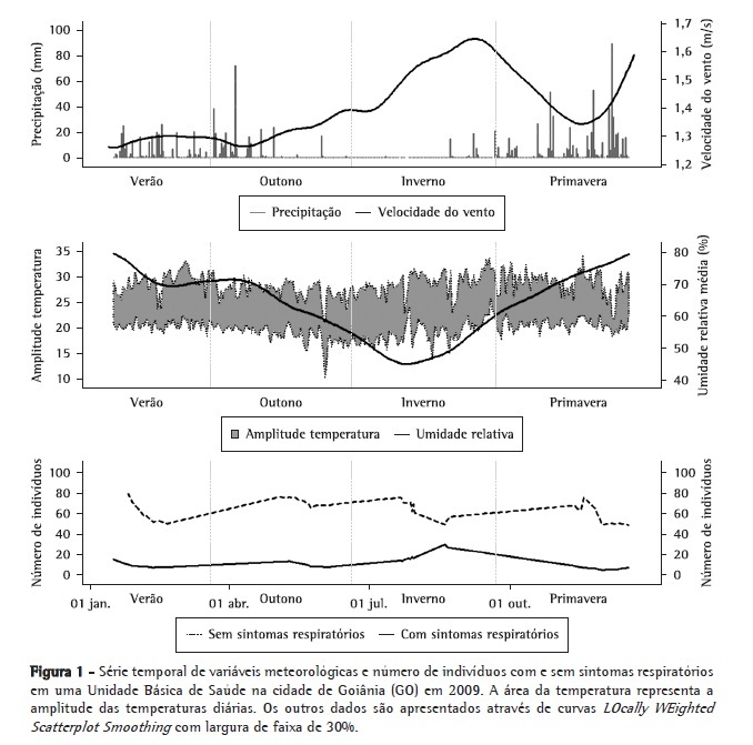 Foram documentados vários efeitos da sazonalidade climática em saúde pública em áreas de clima temperado e subtropical,(4-8) mas as relações entre a saúde e o clima ainda não são bem entendidas.(9) Alguns trabalhos encontraram uma conexão entre temperatura ou umidade e o aumento na proporção de doenças respiratórias; entretanto, esses estudos foram baseados em dados secundários, sujeitos a vieses, o que causa preocupação quanto a sua validade e confiabilidade metodológicas.(10-17)