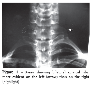 A chest X-ray showed bilateral cervical ribs (Figure 1).