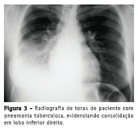 Pelo exposto acima, o papel da radiografia de tórax no diagnóstico clínico da tuberculose pulmonar permanece incerto em pacientes em UTIs, podendo não contribuir tanto quanto o esperado. Em um estudo caso-controle, 89 pacientes com tuberculose pulmonar e um número igual de controles foram avaliados, sendo que o padrão radiológico mais comumente encontrado foi a consolidação, em 61 pacientes (6,5%). Na análise multivariada, a história de tuberculose pulmonar prévia foi associada com a suspeita clínica de tuberculose, mas os padrões radiológicos não foram associados a essa suspeita.(21)