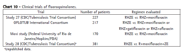 75. Conde MB, Efron A, Loredo C, De Souza GR, Graça NP, Cezar MC, et al. Moxifloxacin versus ethambutol in the initial treatment of tuberculosis: a double-blind, randomised, controlled phase II trial. Lancet. 2009;373(9670):1183-9.