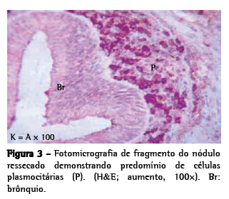 Os autores salientam também o fato de que a variante histológica reportada apresentou-se clinicamente, no caso particularizado, por uma forma nodular parenquimatosa, com uma evolução favorável, contrariamente ao que seria de se esperar no subtipo plasmocítico.
