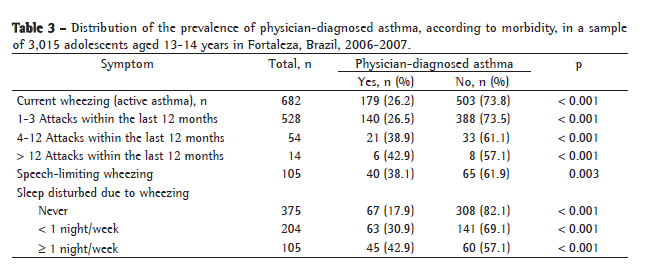 Prevalence of asthma among adolescents in the city of Fortaleza, Brazil