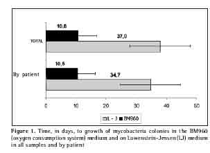 Conclusion: The difference between the culture yield obtained using the automated system and that achieved with Löwenstein-Jensen culture was statistically significant. Mean time to detection of mycobacteria was significantly shorter with the automated system. The higher yield provided by this new system justifies its use in a reference center for tuberculosis in São Paulo