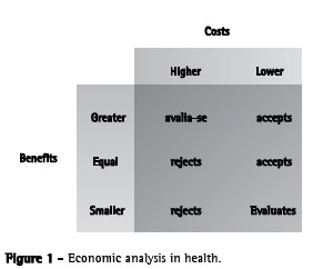 When two or more strategies are compared, their benefits and costs should be considered. Therefore, various types of economic analyses can be carried out. The simplest way to evaluate the appropriateness of a new proposal is illustrated in Figure 1. The ideal model is one in which the benefits are equal to or greater than the costs.