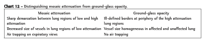127. Worthy SA, Müller NL, Hartman TE, Swensen SJ, Padley SP, Hansell DM. Mosaic attenuation pattern on thin-section CT scans of the lung: differentiation among infiltrative lung, airway, and vascular diseases as a cause. Radiology. 1997;205(2):465-70.