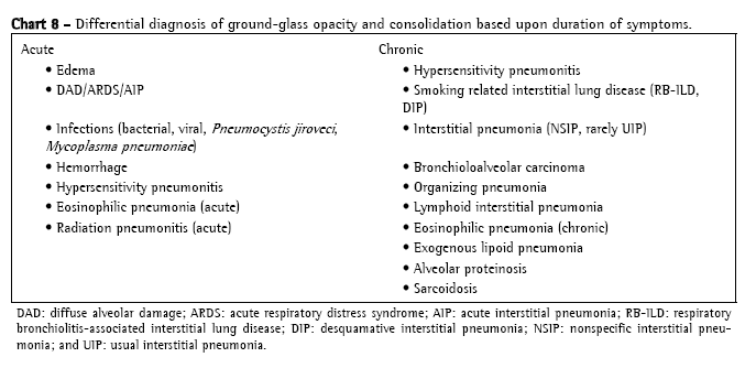 84. Miller WT Jr, Shah RM. Isolated diffuse ground-glass opacity in thoracic CT: causes and clinical presentations. AJR Am J Roentgenol. 2005;184(2):613-22.