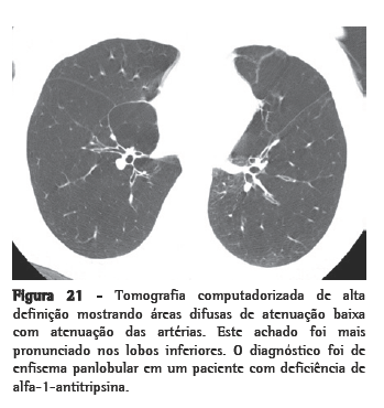A tomografia de alta resolução (TCAR) é a técnica de imagem radiológica que reflete mais de perto as alterações da estrutura pulmonar. Os