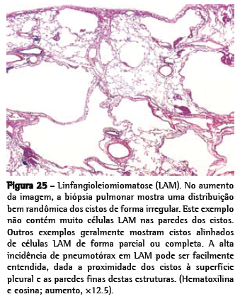 A doença de Erdheim-Chester é uma rara histiocitose sistêmica que afeta tipicamente os ossos longos, com envolvimento pulmonar em 15% dos casos.(8) A doença é hoje reconhecida como uma condição distinta das formas sistêmicas da histiocitose de células de Langerhans (HCL). Deve-se considerar o diagnóstico de doença de Erdheim-Chester em pacientes do sexo masculino com mais de 40 anos de idade apresentando dor óssea difusa e DIPD. Em tais casos, deve-se descartar o diagnóstico de carcinoma metastático. Em pacientes com doença de Erdheim-Chester, o envolvimento pulmonar é sugerido pela presença de sombras reticulares simétricas em radiografia de tórax, espessamento dos septos interlobulares (em radiografia de tórax e tomografia computadorizada), opacidades nodulares centrolobulares, opacidades em vidro fosco e espessamento das fissuras. A patologia é distinta, mostrando leve fibrose na pleura e ao longo dos vasos linfáticos dos septos interlobulares. Ao contrário do observado em pacientes com HCL, os histiócitos de pacientes com a doença de Erdheim-Chester apresentam resultados imunohistoquímicos negativos para a proteína S100 e CD1a mas positivos para CD68.