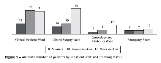 Figure 1 shows the distribution of inpatients in the various HU-UFSC wards by smoking status. The prevalence of smoking was highest among clinical medicine ward inpatients.