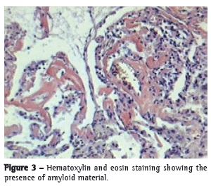 In the case described here, immunohistochemistry was not performed to define the type of amyloidosis, since it had already been clinically defined as primary.