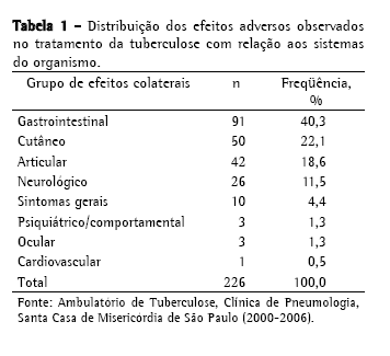 Efeitos adversos no tratamento da tuberculose: experiência em serviço ambulatorial de um hospital-escola na cidade de São Paulo