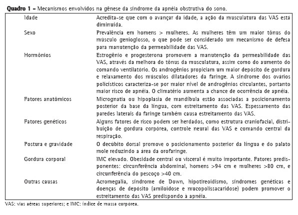A SAHOS é uma doença prevalente com expressão clínica variável, em que fatores anatômicos, funcionais, neurais e genéticos interagem na sua gênese (Quadro 1)