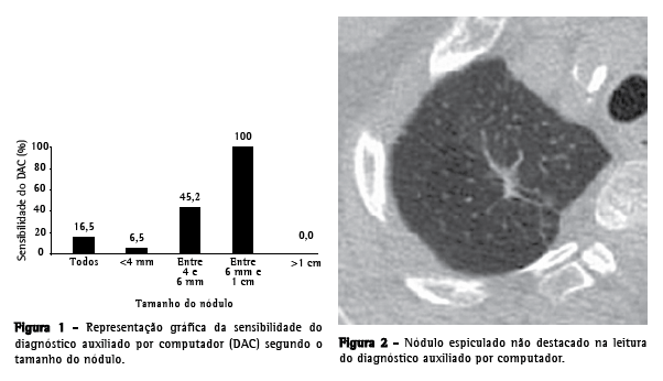 Os números de sensibilidade e impacto insignificante sobre a leitura de radiologistas não estão de acordo com outros estudos atuais realizados com TC com múltiplos detectores (TCMD).(18,23-25) A discrepância dos resultados obtidos nos remete a algumas críticas sobre este e outros trabalhos recentes.